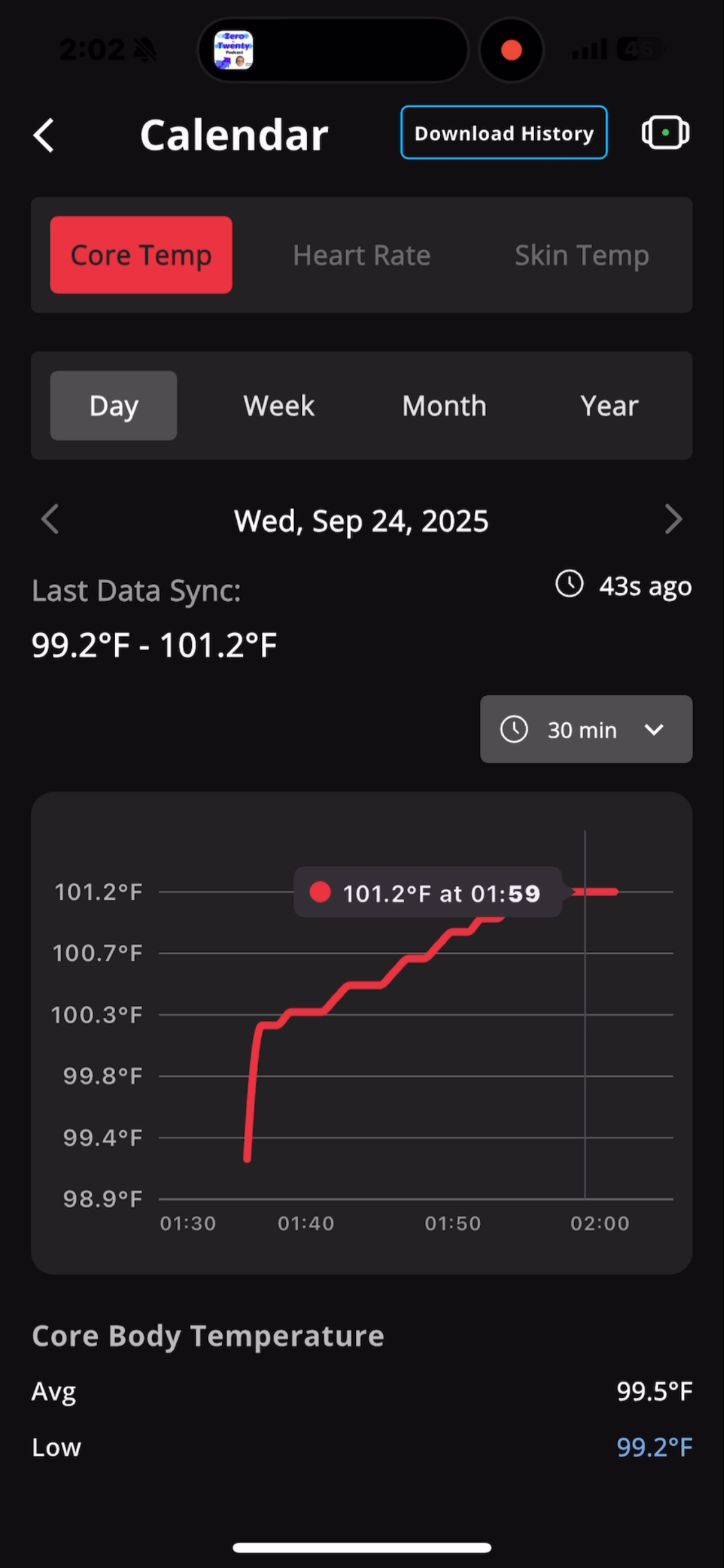 With visible symptoms, she had to stop the workout. Her core temp stabilized. She felt better after rest.