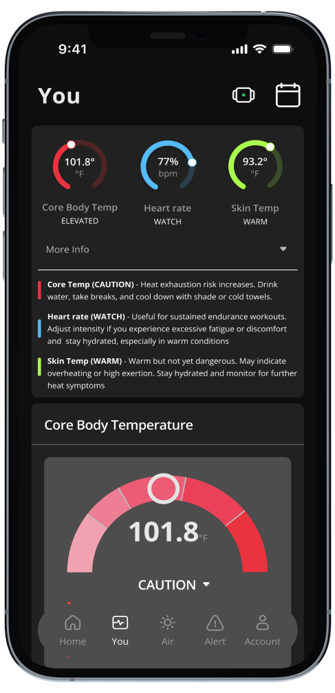 - Get notified before performance drops or heat illness risks rise.