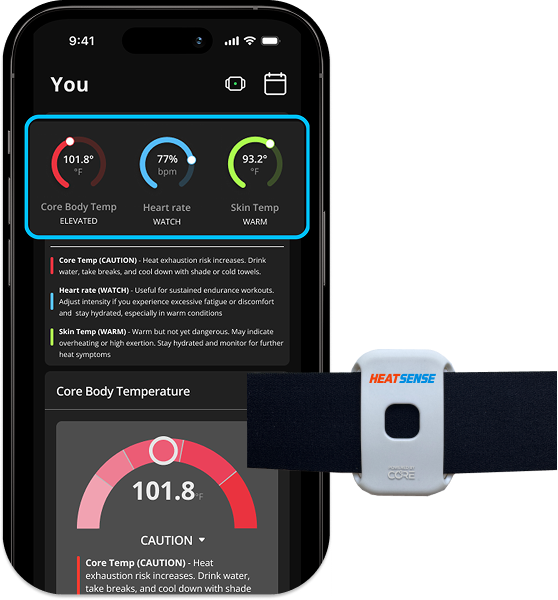 - Delivers personalized insights like Heat Strain Index and Acclimatization Score